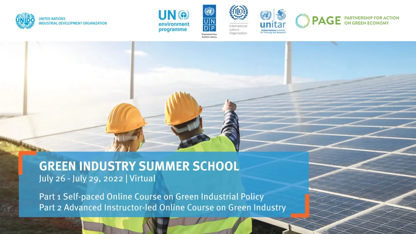 The United Nations Industrial Development Organization (UNIDO) is organizing a Green Industry Summer School-2022 under the United Nations Partnership for Action on Green Economy (PAGE). The course is designed to provide guidance to policymakers and practitioners on green industrial transformation. It also offers an up-to-date overview of the debate on green industrial policy.