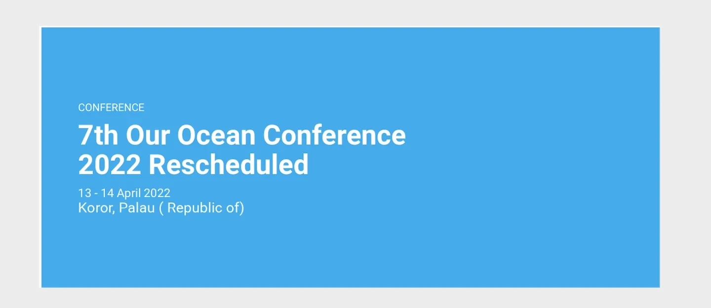 The Our Ocean Conference steering committees in Palau and the United States will reach out to appropriate points of contact with updated information. In addition, the dates for the call for commitments, call for side events, and youth delegation applications are extended. Please continue to check the website www.ourocean2022.pw for information about the conference. To pose any questions, please email ourocean2022 [at] palaupresident.info (ourocean2022[at]palaupresident[dot]info) and ourocean2022 [at] state.gov (ourocean2022[at]state[dot]gov).