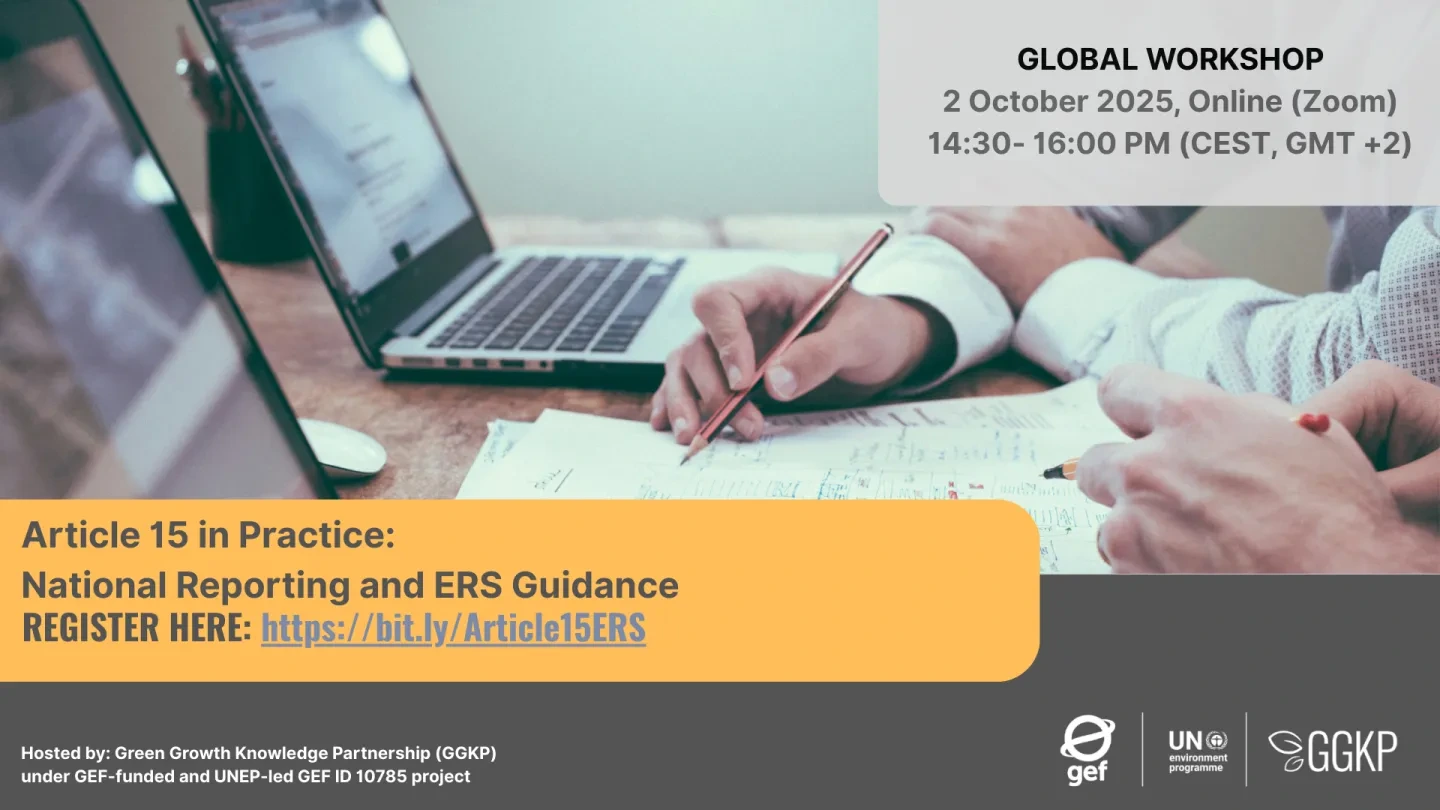 On 2 October 2025 (14:30-16:00 CEST), the Green Growth Knowledge Partnership (GGKP), as part of the GEF-funded and UNEP-led Global NIP Update project (GEF ID 10785), will host the workshop “Article 15 in Practice: National Reporting and ERS Guidance” for project countries.