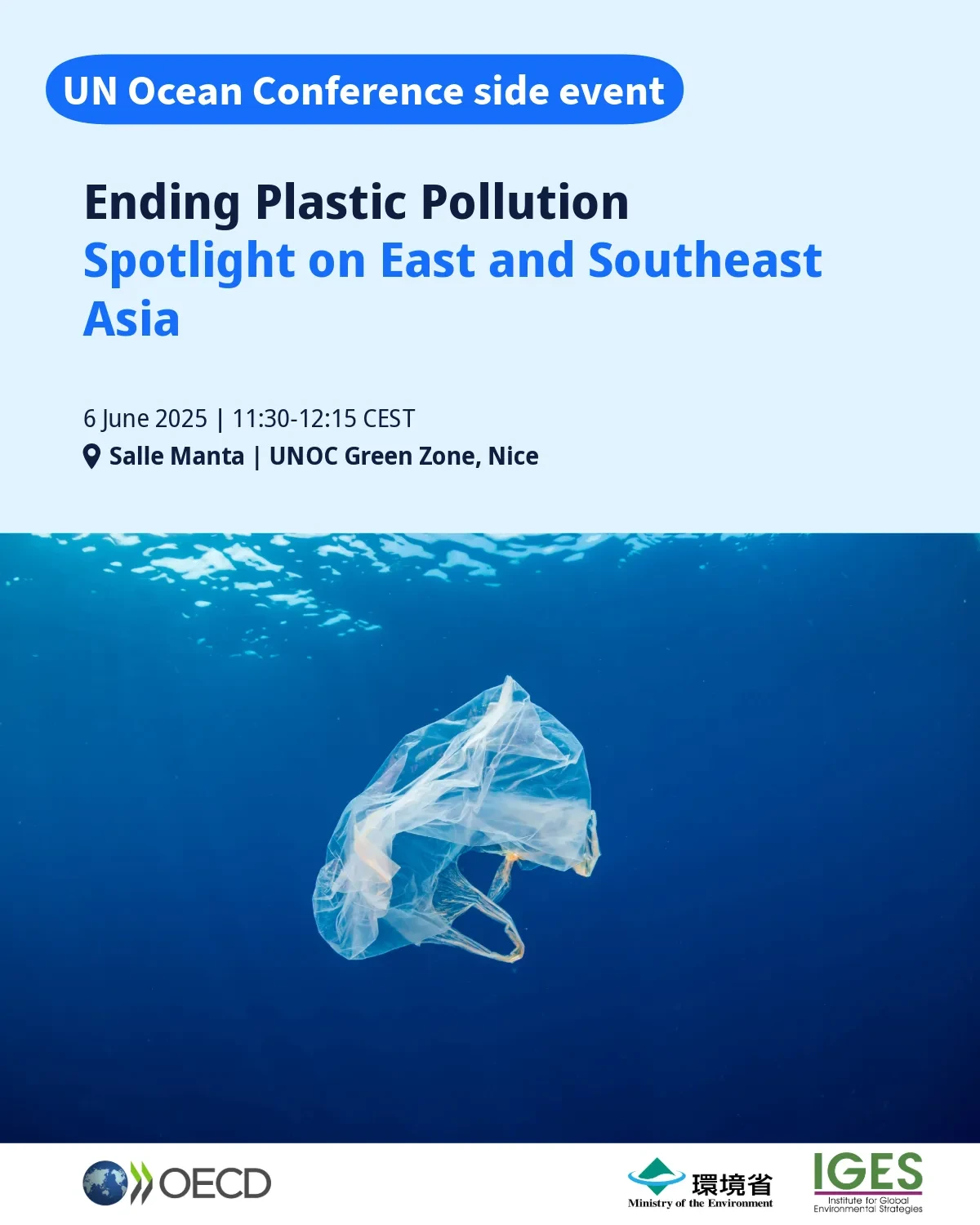 Plastic pollution is a global environmental issue. East and Southeast Asia are of strategic importance in the fight against plastic pollution, where rivers and coastlines are some of the most affected. Co-organised by the OECD together with the Japanese Ministry of the Environment and the Institute for Global Environmental Strategies, this UNOC3 side event seeks to spotlight current trends in plastic flows and pollution across ASEAN Plus Three Member States as well as showcase effective national and regional initiatives, and identify priorities for scaling up policy action, financing and partnerships – within the marine environment and beyond. Join us June 6, 11:30 – 12:15 CEST in the Green Zone, La Baleine. Register here.