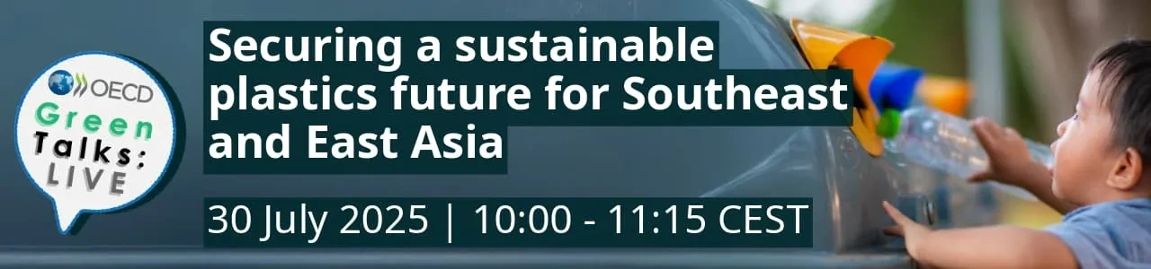 Join us at the next OECD Green Talks LIVE webinar on 30 July 2025 from 10:00-11:15 CEST as we discuss these questions during the launch of the Regional Plastics Outlook for Southeast and East Asia. Shardul Agrawala, Head of the Environment and Economy Integration Division at the OECD Environment Directorate will be joined by OECD Environment Economist Ruben Bibas and Junior Environmental Policy Analyst Elena Buzzi to present key findings from the report. The webinar will feature a panel of policymakers and regional stakeholders and be moderated by Jo Tyndall, Director of the OECD Environment Directorate. During the discussions, speakers will unpack the dynamics of plastic flows within the region, take stock of current policies and highlight key gaps to be bridged to end plastic pollution.