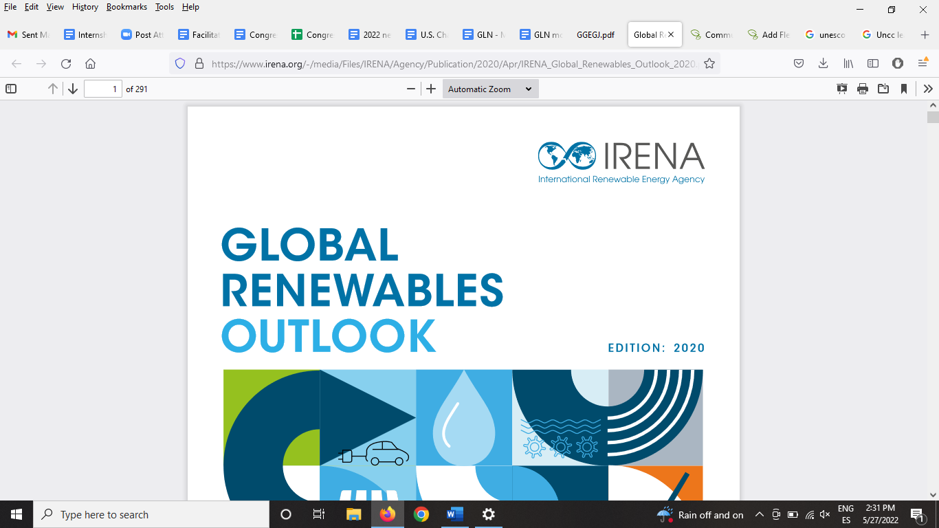 "This first Global Renewables Outlook arrives while the world suffers through the COVID-19 pandemic, which brings dramatic numbers of people infected, a mounting death toll, and social and economic disruption for regions, countries and communities."