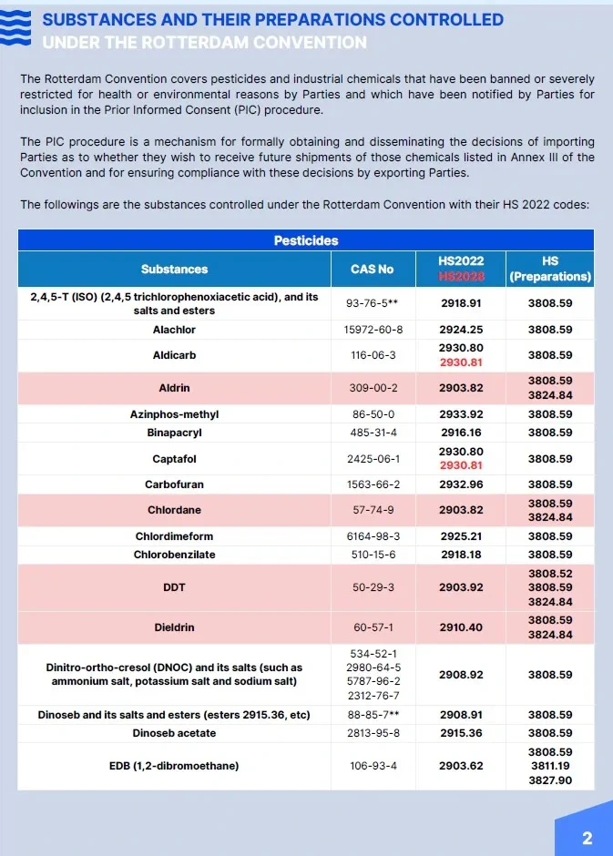This pocket list serves as a practical reference for identifying Harmonized System (HS) codes assigned to chemicals controlled under the Rotterdam and Stockholm Conventions.