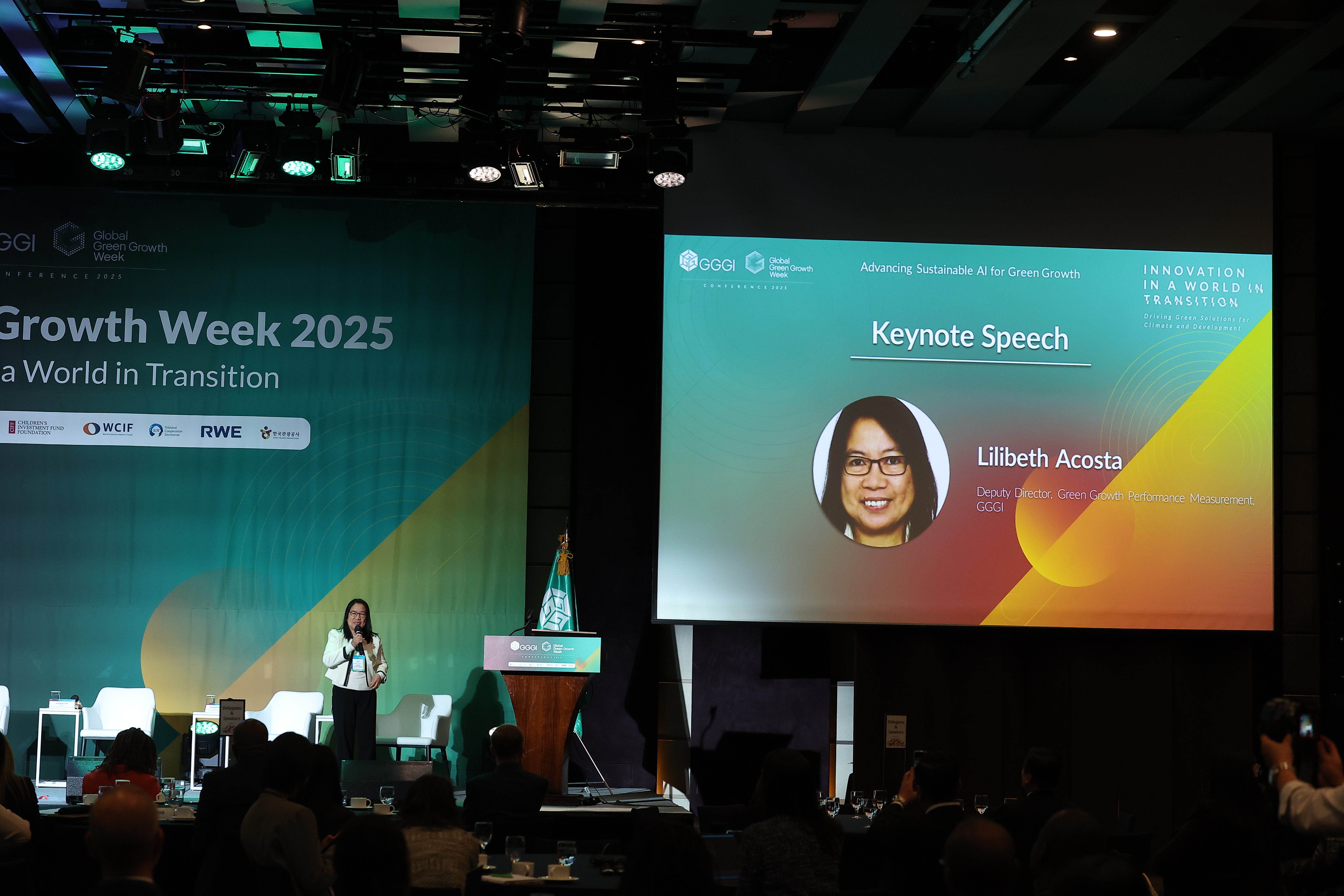 The session also showcased emerging AI applications for policy planning. Dr. Lilibeth Acosta, Deputy Director and Programme Manager for the Green Growth Performance Measurement at GGGI, presented an AI-enhanced green growth simulation toolkit developed with international partners.