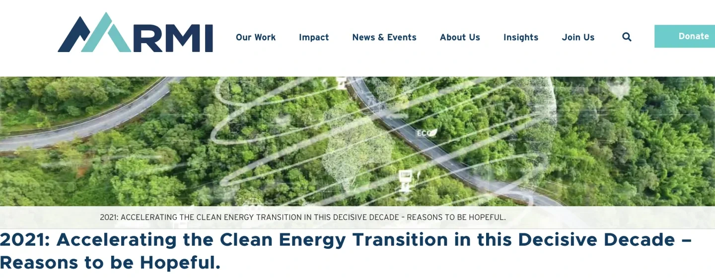 The world continued to face unprecedented challenges this past year – the global COVID19 pandemic continued to wreak havoc, this summer’s UNFCCC report forecasted dire news of climate impacts on our planet. All this can feel hopeless. At RMI, we are leading with HOPE and SOLUTIONS to dramatically accelerate the clean energy transition in this decade. We’re very fortunate to have talented, young, leaders throughout our programs spearheading the change required. Their passion, relentlessness, and innovative thinking gives us hope that we can right the course toward a climate-aligned pathway by 2030, with global programs that aligns all the Institute’s efforts around targets required for a 1.5°C future.