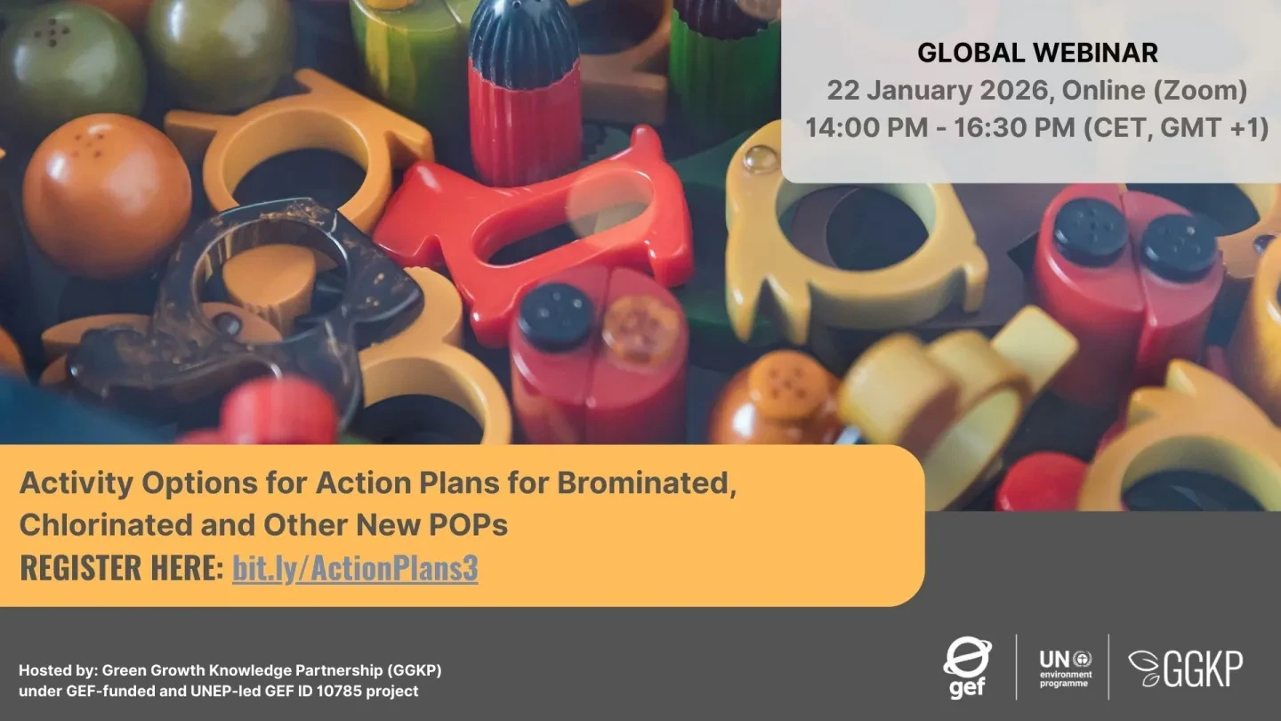 On 22 January 2026 (14:00-16:30 CET), the Green Growth Knowledge Partnership (GGKP), as part of the GEF-funded and UNEP-led Global NIP Update Project (GEF ID 10785), will host a virtual webinar on Activity Options for Action Plans for Brominated, Chlorinated and Other New POPs.