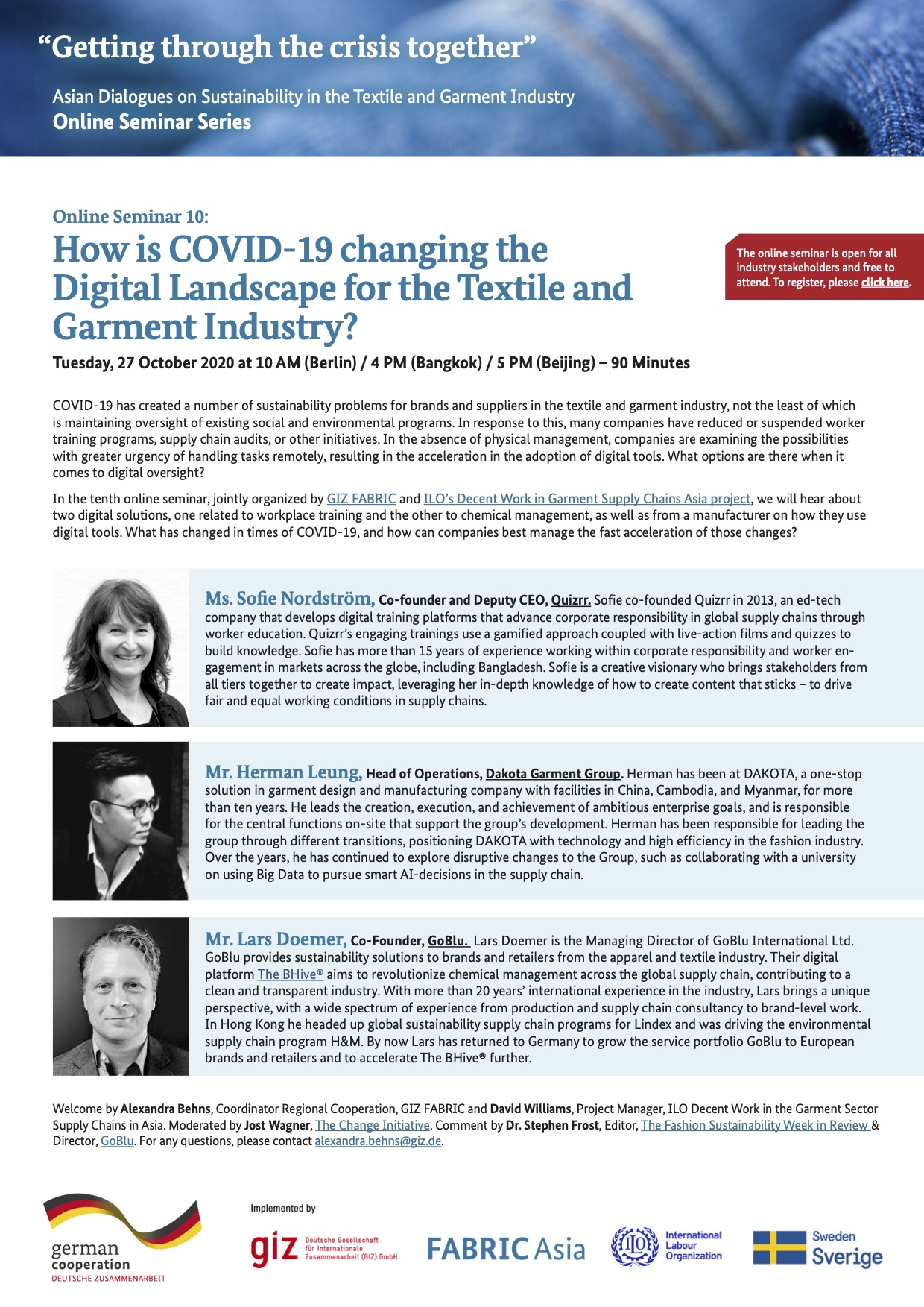 Asian dialogues on sustainability: "How is covid-19 changing the digital landscape for the textile and garment industry"