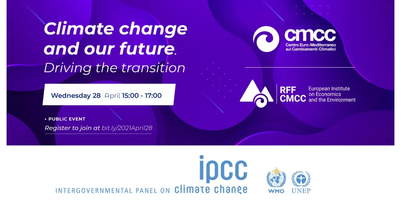 On 28 April 2021, Working Group III (WG III) of the Intergovernmental Panel on Climate Change (IPCC), the RFF-CMCC European Institute on Economics and the Environment (EIEE) and the Euro-Mediterranean Center on Climate Change (CMCC) are hosting a webinar on "Climate change and our future - Driving the transition".