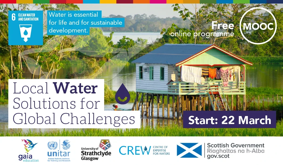 The course presented by the University of Strathclyde, Gaia Education and UNITAR contributes to the International Decade (2018–2028) for Action – Water for Sustainable Development. The course is supported by the Scottish Government.