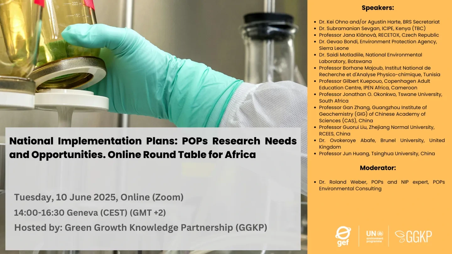 On 10 June 2025 (14:00–16:30 CEST), the Green Growth Knowledge Partnership (GGKP), under the UNEP-led and GEF-funded Global NIP Update project, will host a regional roundtable on “National Implementation Plans: Research needs and opportunities in Africa.”