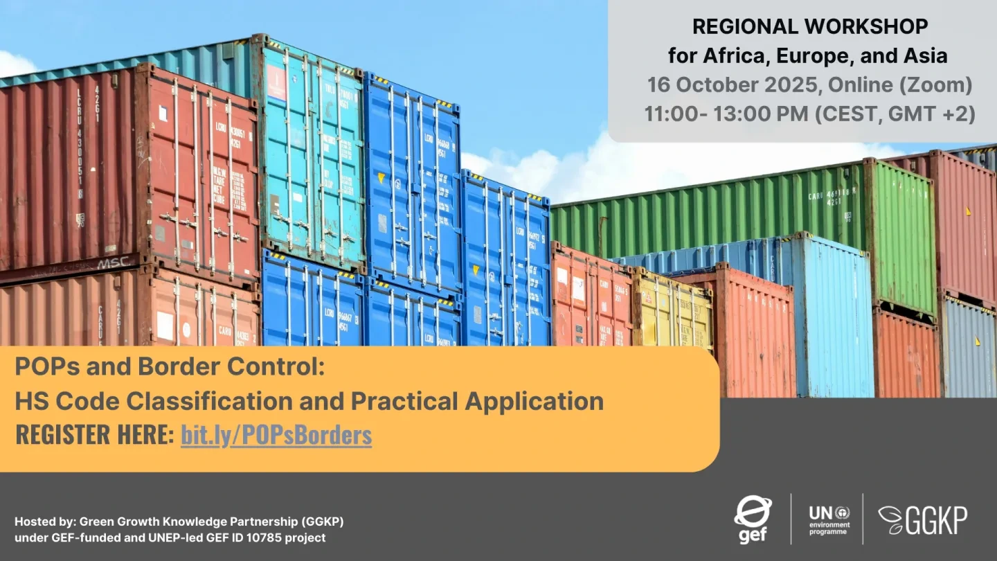 On 16 October 2025 (11:00-13:00 CEST), the Green Growth Knowledge Partnership (GGKP), as part of the GEF-funded and UNEP-led Global NIP Update Project (GEF ID 10785), will host a virtual workshop, "POPs and Border Control – HS Code Classification and Practical Application," for countries in Europe, Asia and Africa.