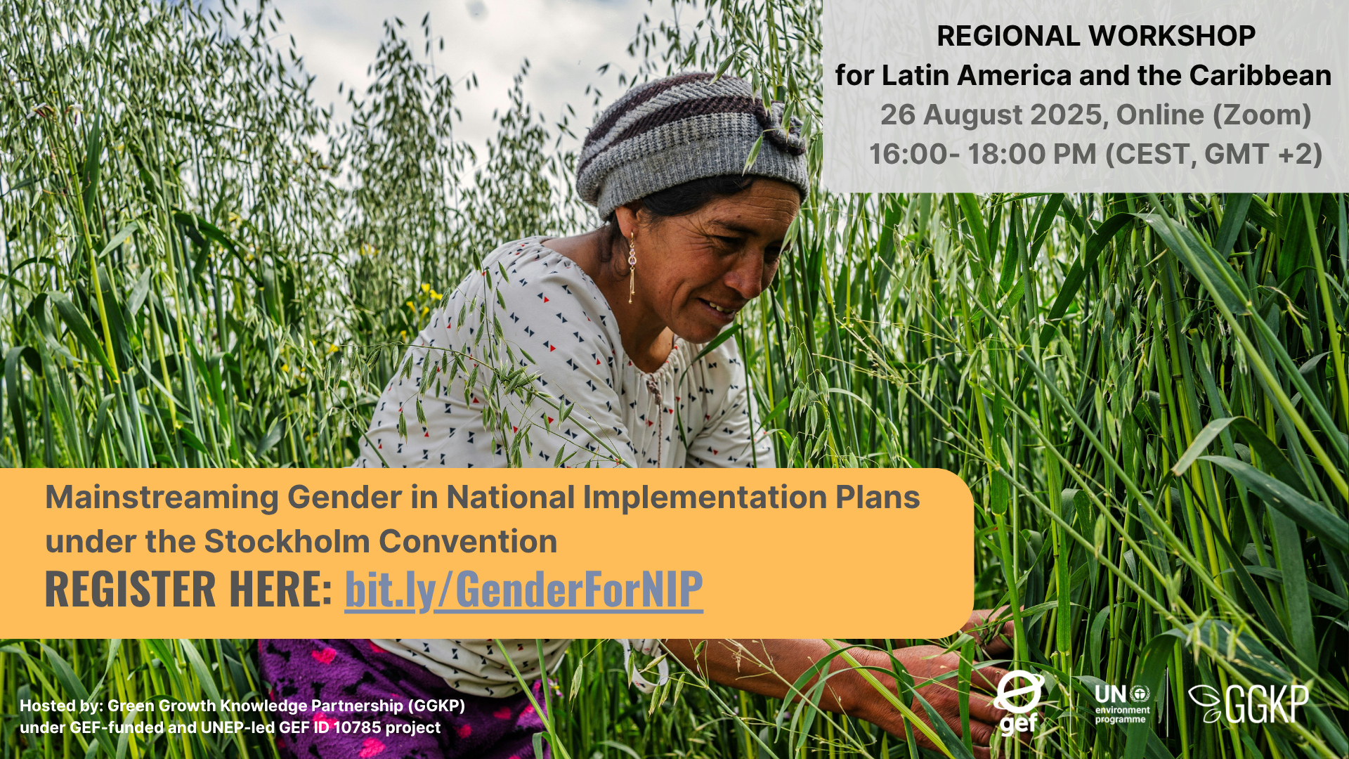 On 26 August 2025 (16:00–18:00 CEST), the Green Growth Knowledge Partnership (GGKP), as part of the GEF-funded and UNEP-led Global NIP Update project (GEF ID 10785), will host a regional workshop on Mainstreaming Gender in National Implementation Plans under the Stockholm Convention for project countries in Latin America and the Caribbean.
