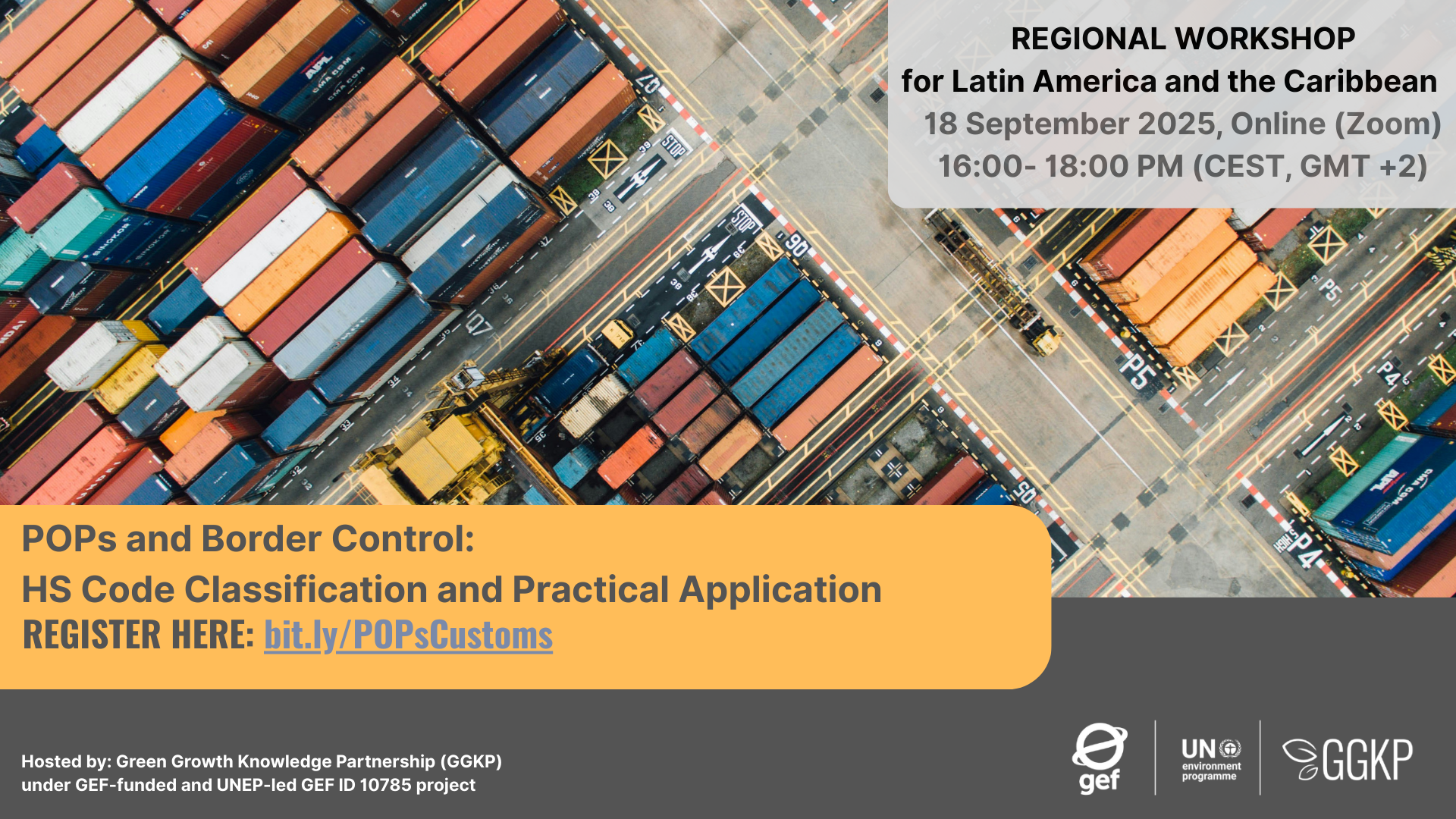 On 18 September 2025 (16:00-18:00 CEST), the Green Growth Knowledge Partnership (GGKP), as part of the GEF-funded and UNEP-led Global NIP Update Project (GEF ID 10785), will host the regional workshop "POPs and Border Control – HS Code Classification and Practical Application" for countries in Latin America and the Caribbean.