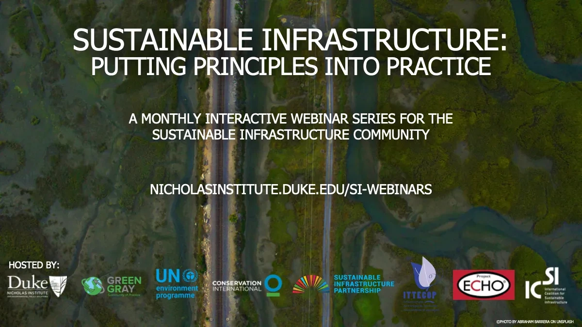 Hosted by: Sustainable Infrastructure Partnership, Duke University Nicholas Institute for Environmental Policy Solutions, the Green Gray Community of Practice, UN Environment Programme, Conservation International, ITTECOP, and Project ECHO.