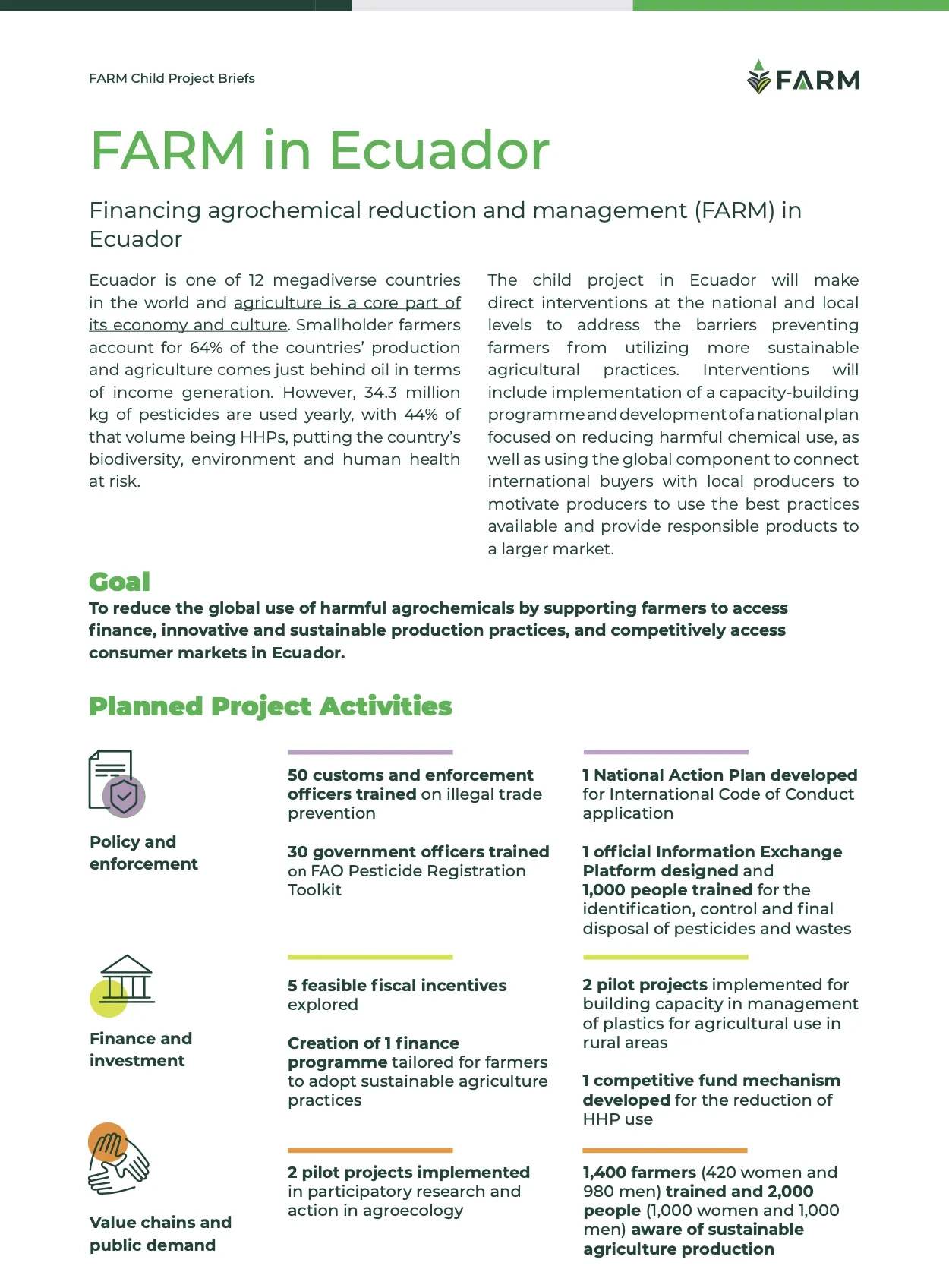 This is the approved project document for the FARM Child Project in Ecuador, including all annexes and appendices.