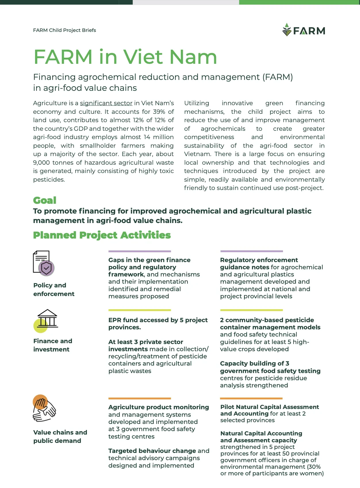 This is the approved project document for the FARM Child Project in Viet Nam, including all annexes and appendices.