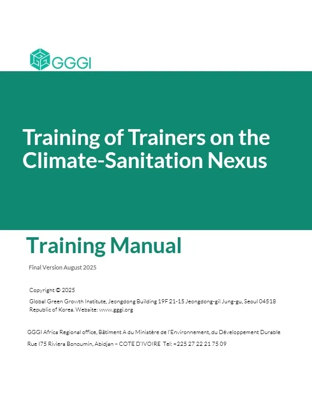 This training manual was developed as part of the project ‘Promoting inclusive sanitation at city level through climate resilience in West Africa’, implemented by the Global Green Growth Institute (GGGI) with financial support from the Gates Foundation in Senegal, Burkina Faso and Côte d'Ivoire. The project aims to better integrate sanitation into national climate policies and planning processes, including the revision of nationally determined contributions (NDCs), and to strengthen the conditions conducive to mobilising climate finance for sanitation systems.
