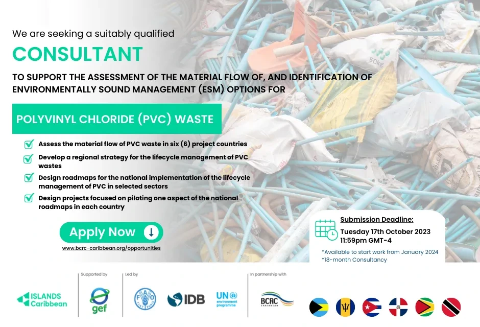 In the Caribbean, Polyvinyl Chloride (PVC) has been highlighted as an area of concern for some of the GEF ISLANDS Project Countries. To this end, Activity 3.3.2 will focus on the management of PVC plastic wastes in The Bahamas, Barbados, Cuba, Dominica, Guyana and Trinidad and Tobago. This activity will seek to develop and conduct a suitable assessment on PVC in selected sectors of the six (6) countries, with the overarching aim of developing environmentally sound solutions for same and designing pilot projects to demonstrate the feasibility of the solutions.