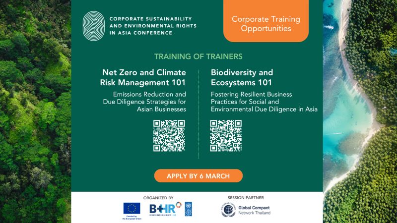 We are sharing this call for applications for two specialized Training-of-Trainers (ToT) sessions, which will be part of the Corporate Sustainability and Environmental Rights in Asia (CSERA) conference. These sessions are tailored for corporate sustainability professionals, environmental compliance officers, risk managers, and others engaged in corporate governance with a focus on environmental sustainability and climate resilience.