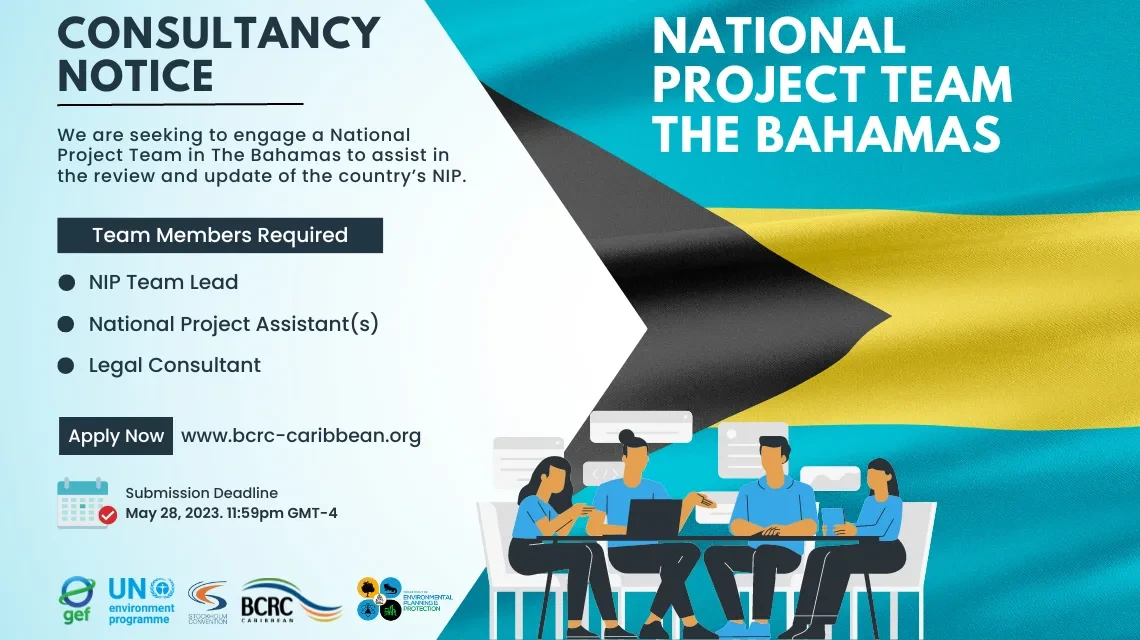 In the Caribbean, the BCRC-Caribbean is executing the national component of the project in The Bahamas and Dominica with support from the national project focal points and key national stakeholders. To complete the required work, we are seeking to engage a National Project Team (NPT) in The Bahamas to assist in the review and update of the country’s NIP.